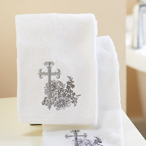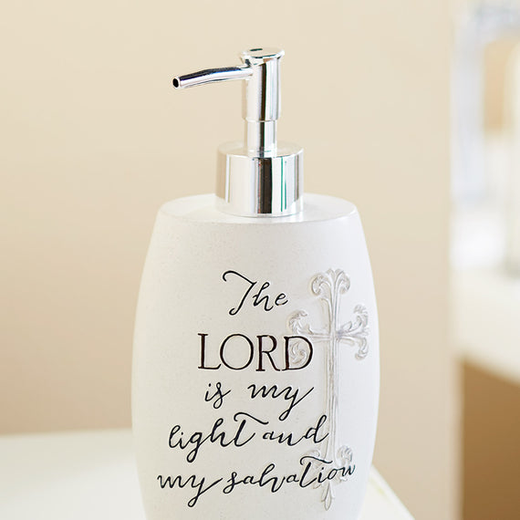 Start and end your day with the reassuring words and images on this Light and Salvation Bath Collection. Each item features the image of a cross and floral accents.